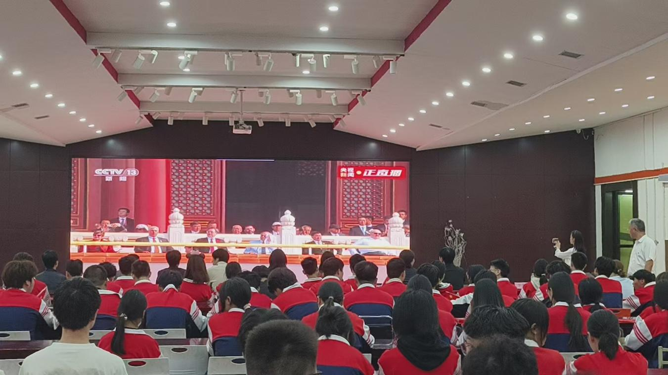 9月3日,物資職校200余名師生代表集中收看紀(jì)念大會實(shí)況直播,銘記歷史、緬懷先烈。習(xí)近平總書記的重要講話令學(xué)生備受鼓舞,增強(qiáng)了師生的民族自豪感與集體凝聚力,讓大家更清晰認(rèn)識到自身責(zé)任與使命。全體教師熱情高昂的表示將傳承弘揚(yáng)愛國主義精神,把抗戰(zhàn)精神融入課堂,牢記育人使命,為強(qiáng)國建設(shè)、民族復(fù)興作貢獻(xiàn)。廣大學(xué)生激情澎湃的表達(dá),將以先輩為榜樣,刻苦學(xué)習(xí)、堅定信念,努力成長為擔(dān)當(dāng)民族復(fù)興大任的時代新人。